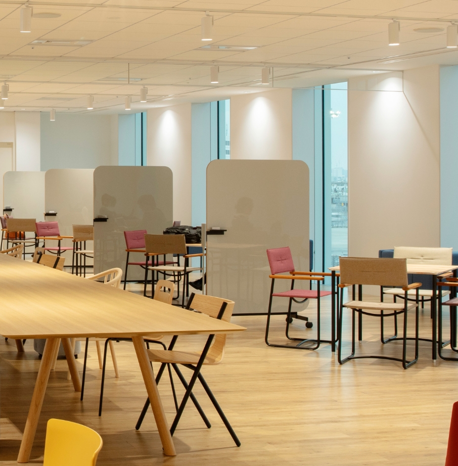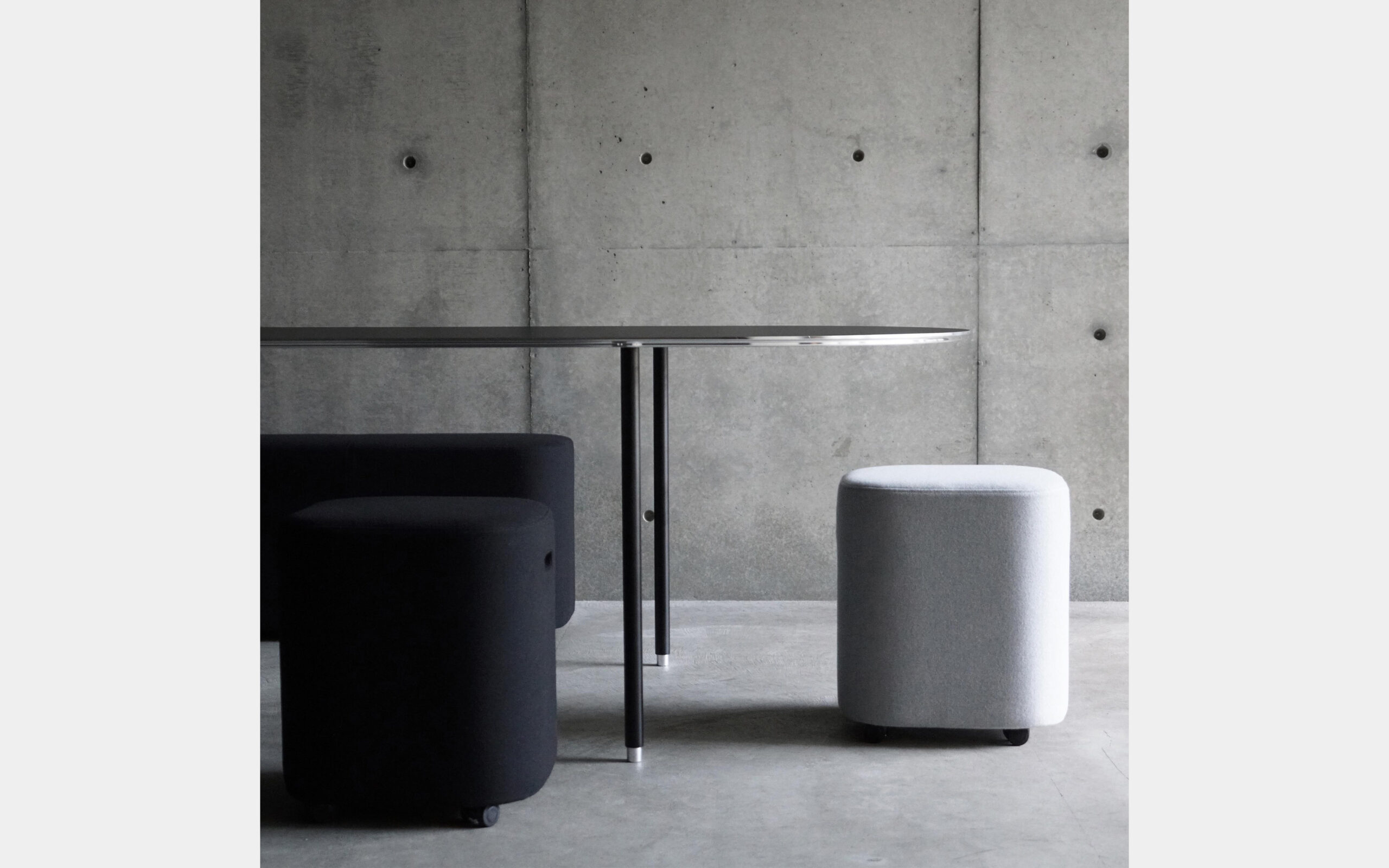 長方形は丸よりもロジカルに配置が可能な反面、丸ほど優しさや自由さがなくなってしまうので丁度その中間のイメージでした。公共の場では適度な緊張感と安心感のバランスが重要で、四方の角の丸みや座面の張りはそれらを表現してくれています。