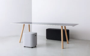 オフィスや公共の場で使用されることを想定した際に最初に頭に浮かんだ形が角の丸い長方形でした。